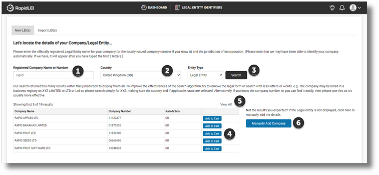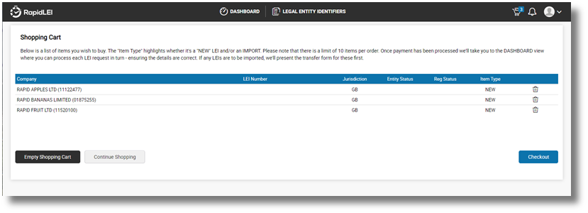Top Tip! – You can add up to 10 LEIs into the shopping cart at once. These can also be a mixture of NEW & IMPORT to allow you to make a single payment.